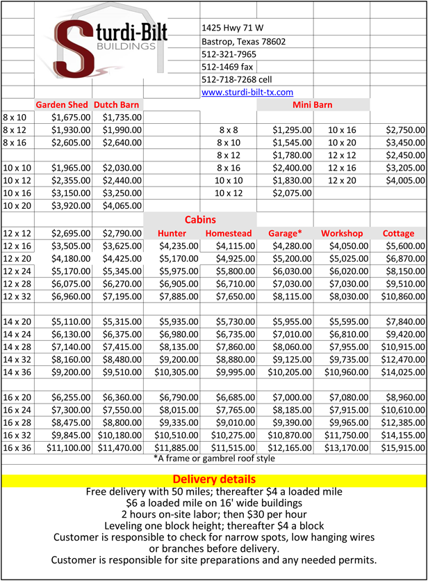 Compare Sturdi-Bilt Buildings quality to our competitors. |
