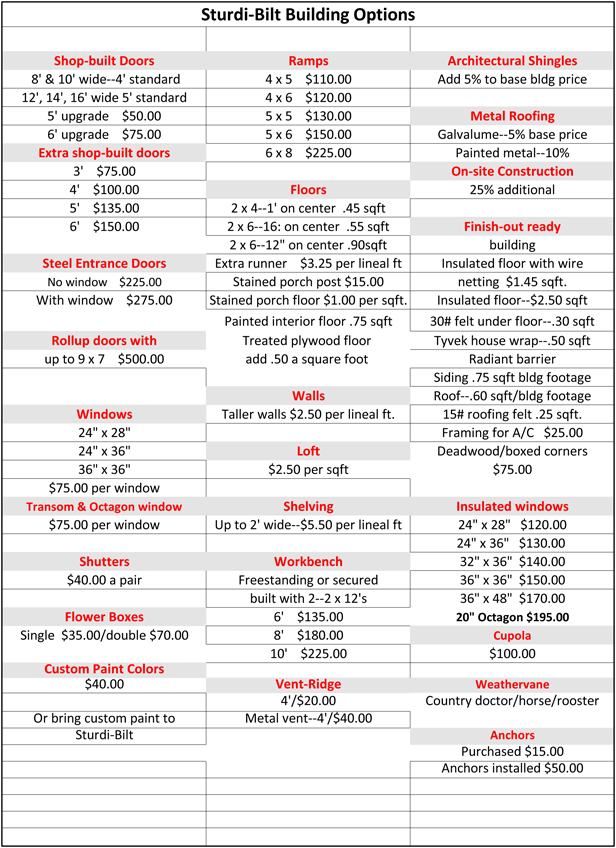 Compare Sturdi-Bilt Buildings quality to our competitors. |