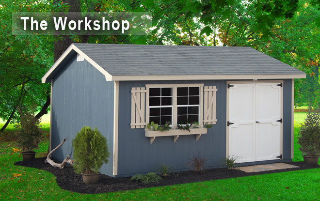 With the traditional look of a house, the Workshop adds character and style. It is an attractive backyard addition that compliments your home.